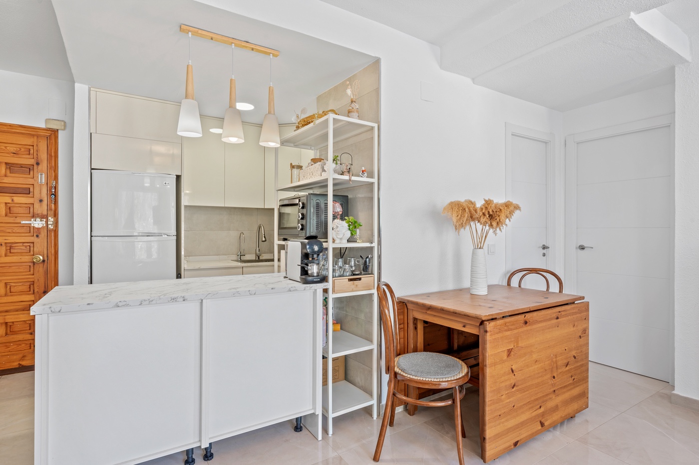 If you are looking for a quiet, bright, well-connected apartment with views of the impressive Mount Ponoig, you are in the right place. Located on the 2nd floor of the emblematic Sant Yago building, this apartment offers maximum comfort in a peaceful and safe environment. It features a lift, a large communal swimming pool, parking, a storage room, and is just a 5-minute walk from the town centers of Polop and La Nucía. With over 60 built square meters, the apartment is distributed into an open-plan kitchen with breakfast bar and living room with stunning views of Mount Ponoig, two cozy bedrooms (a main bedroom connected to the living room and a secondary bedroom with a guest bed), a recently renovated bathroom finished to a high standard, a spacious terrace perfect for enjoying Ponoig’s beautiful sunsets or cooking a paella with family and friends, and an adjoining storage room ideal for suitcases or other belongings. This quiet gated community not only offers security, but also landscaped areas next to the large swimming pool and private parking with shaded and sunny areas depending on the time of day, suitable for parking one or several vehicles. Would you like to know more or schedule a viewing? Contact us! We will be delighted to help you make this apartment your new home.