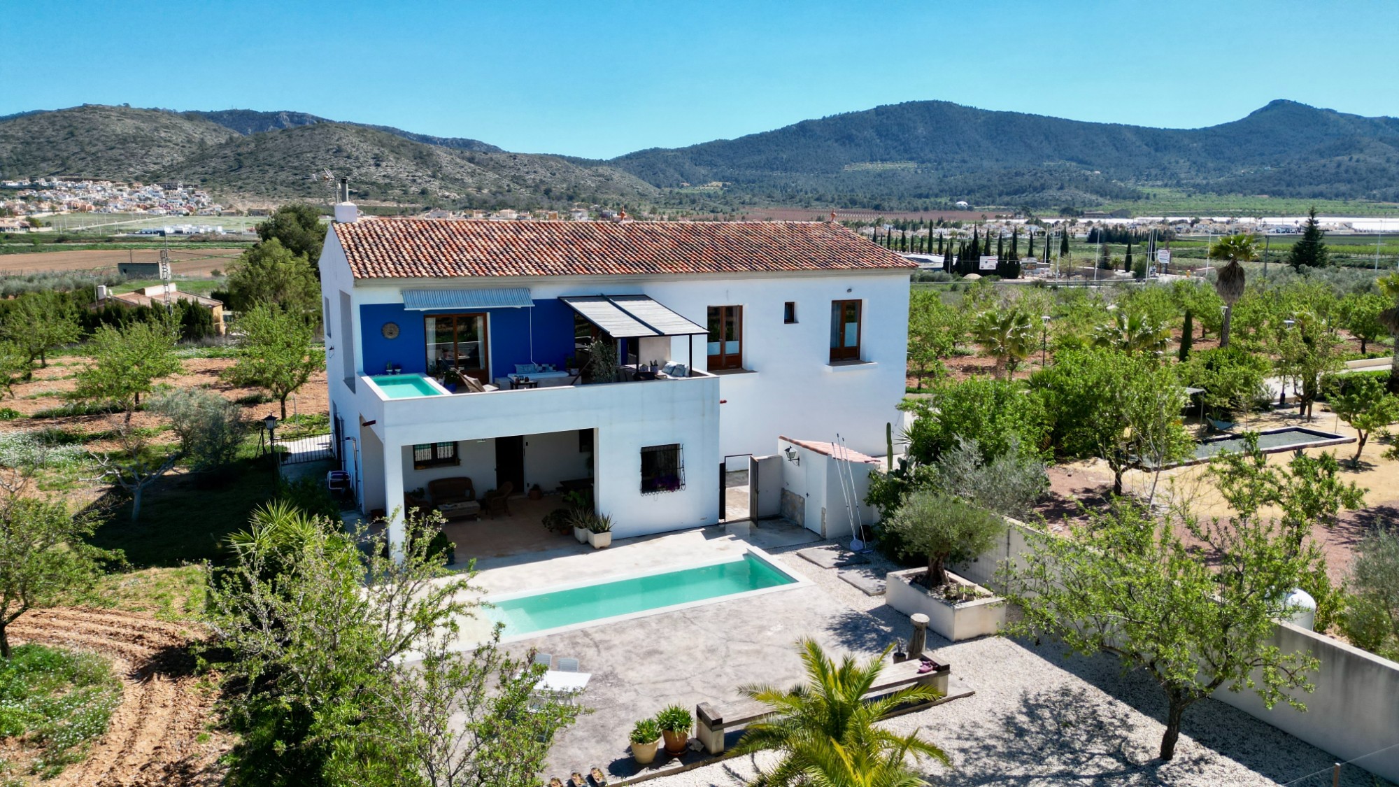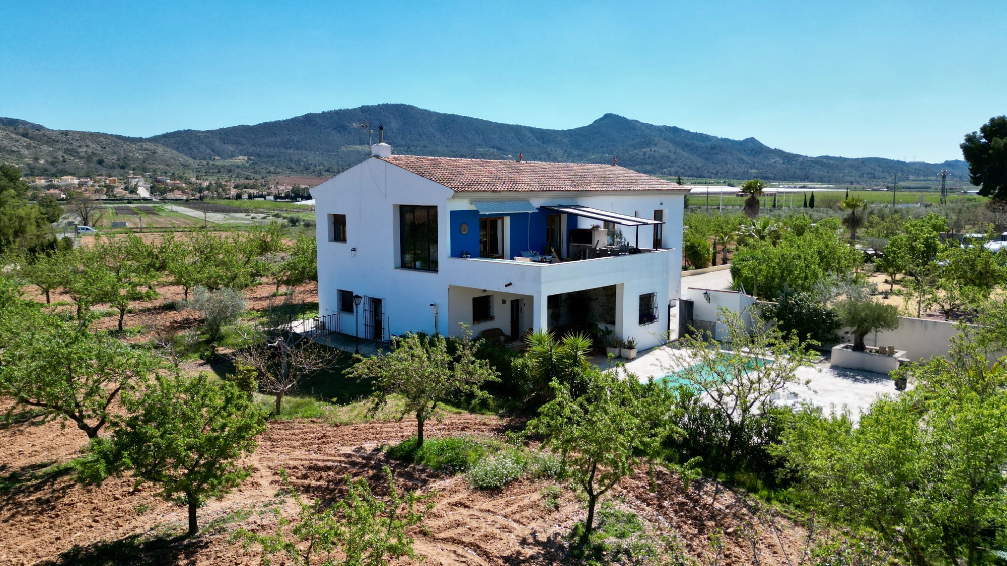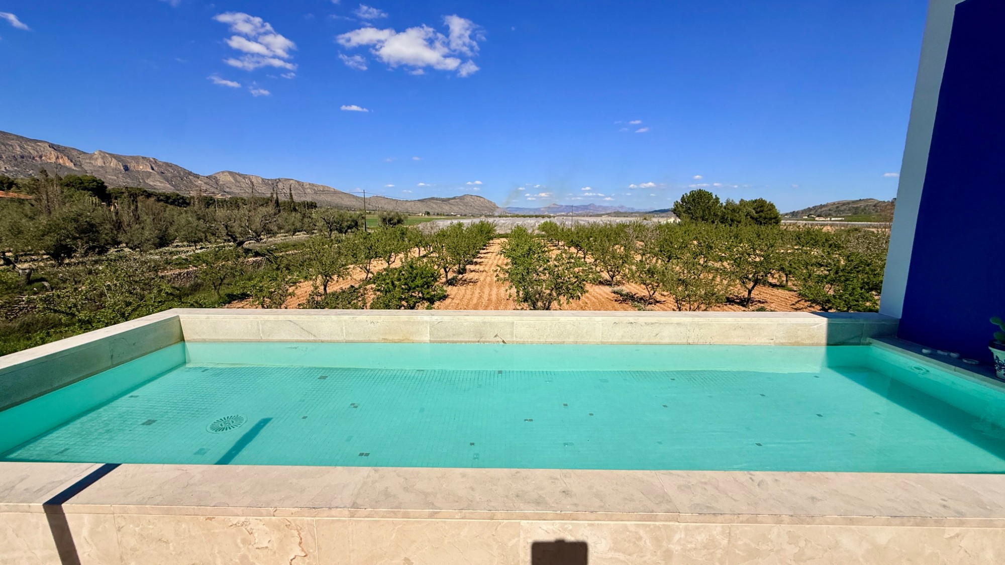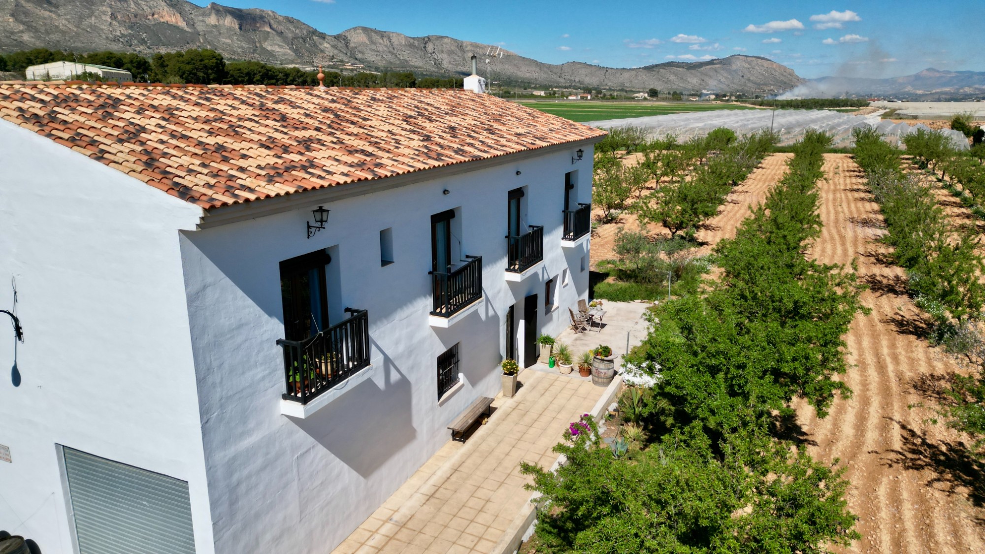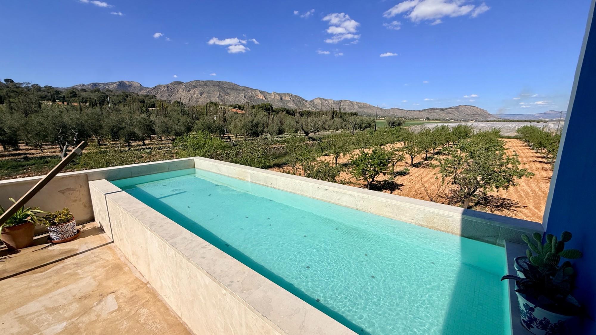 Set discreetly within its own 12,600m² private estate, surrounded by approximately 200 productive almond trees, this exceptional finca-style villa offers a rare fusion of traditional Mediterranean charm and contemporary design. Located between the charming villages of Hondón de las Nieves and Hondón de los Frailes, the property provides complete tranquillity while remaining just minutes from restaurants, cafés and local amenities. From the moment you arrive through the remote-controlled sliding entrance gate, the sense of space and exclusivity is immediately clear. A palm-lined driveway leads through the grounds towards the villa, with ample guest parking and two garages accommodating up to three vehicles. This is a property designed for those who appreciate both elegant architecture and effortless entertaining. The Main Villa – Elevated Living with Panoramic Views The principal living accommodation is located on the first floor, designed to maximise the spectacular views across your own almond grove and the surrounding Hondón Valley. Entering through the foyer, you are welcomed into a central hallway leading to a magnificent open-plan living and dining space. Large feature windows flood the room with natural light while framing the landscape beyond. The living area flows seamlessly into a bespoke designer kitchen, finished in luxurious dark tones with generous work surfaces, high-quality appliances and extensive storage – ideal for both everyday living and entertaining guests. Step outside onto the expansive first-floor terrace, where the lifestyle this home offers truly comes to life. Here you will find: • A private 5m balcony swimming pool• Outdoor dining area• BBQ and entertaining space• Sunbathing terrace with panoramic valley views Imagine cooling off in the pool while overlooking your own almond grove, or enjoying long Mediterranean evenings dining under the stars. Bedrooms Designed for Comfort and Style The main floor offers three spacious double bedrooms. The master suite provides a luxurious retreat, featuring: • Double vanity unit• Walk-in shower• Bathtub• Elegant contemporary finishes Two further double bedrooms of which one is en-suite share a beautifully designed shower room, while guests are catered for with a stylish boutique guest cloakroom. Guest Apartment and Flexible Living Spaces On the ground floor, the villa offers a fully self-contained guest apartment, ideal for visitors, extended family or independent accommodation. This area includes: • Two double bedrooms• Bathroom• Fully equipped kitchen• Lounge and dining area• Pellet burner and fireplace In addition, the lower level also includes: • A beauty studio with bathroom (easily converted into an additional guest suite)• Storage areas and utility rooms• A shaded outdoor dining and bar area• Access to the main pool terrace With these flexible spaces, the property could potentially offer up to seven bedrooms, or alternatively provide space for: • A private office• Gym or wellness studio• Art or music studio• Hobby room Outdoor Living – Designed for Entertaining The exterior of the property is equally impressive and designed around outdoor living. The main swimming pool area is the focal point for entertaining, featuring: • A 9-metre swimming pool with beach-style entry• Large sunbathing terrace• Shaded dining and BBQ areas• Outdoor bar area perfect for summer gatherings With over 300 days of sunshine per year, the Hondón Valley offers the perfect setting for enjoying this exceptional outdoor lifestyle. Private Estate Living The villa sits on a 12,600m² plot, with approximately 12,000m² securely fenced. The almond grove can be easily maintained by a local farmer if desired, allowing you to enjoy the beauty of the land without the responsibility of managing it yourself. During spring, when the almond trees blossom, the landscape transforms into a spectacular display of colour – a truly special experience. Modern Comforts Despite its traditional finca-inspired architecture, the villa offers modern comfort throughout, including: • Mains drinking water• Irrigation water supply• Mains electricity and gas• Underfloor heating• Fast and reliable internet• Modern sewage system The property is being sold unfurnished, although selected furniture may be available via separate negotiation. Location The villa enjoys a privileged position in the heart of the Hondón Valley, one of the most desirable inland areas of Alicante. Within five minutes, you will find more than 25 bars, restaurants and cafés, while Alicante airport and the Mediterranean coast are just over 30 minutes away. This exceptional property offers the rare combination of privacy, space, design and accessibility, making it an ideal permanent residence or luxury countryside retreat. Viewings are strictly by appointment only. If you would like to experience this unique villa in person, please contact us directly for further information.