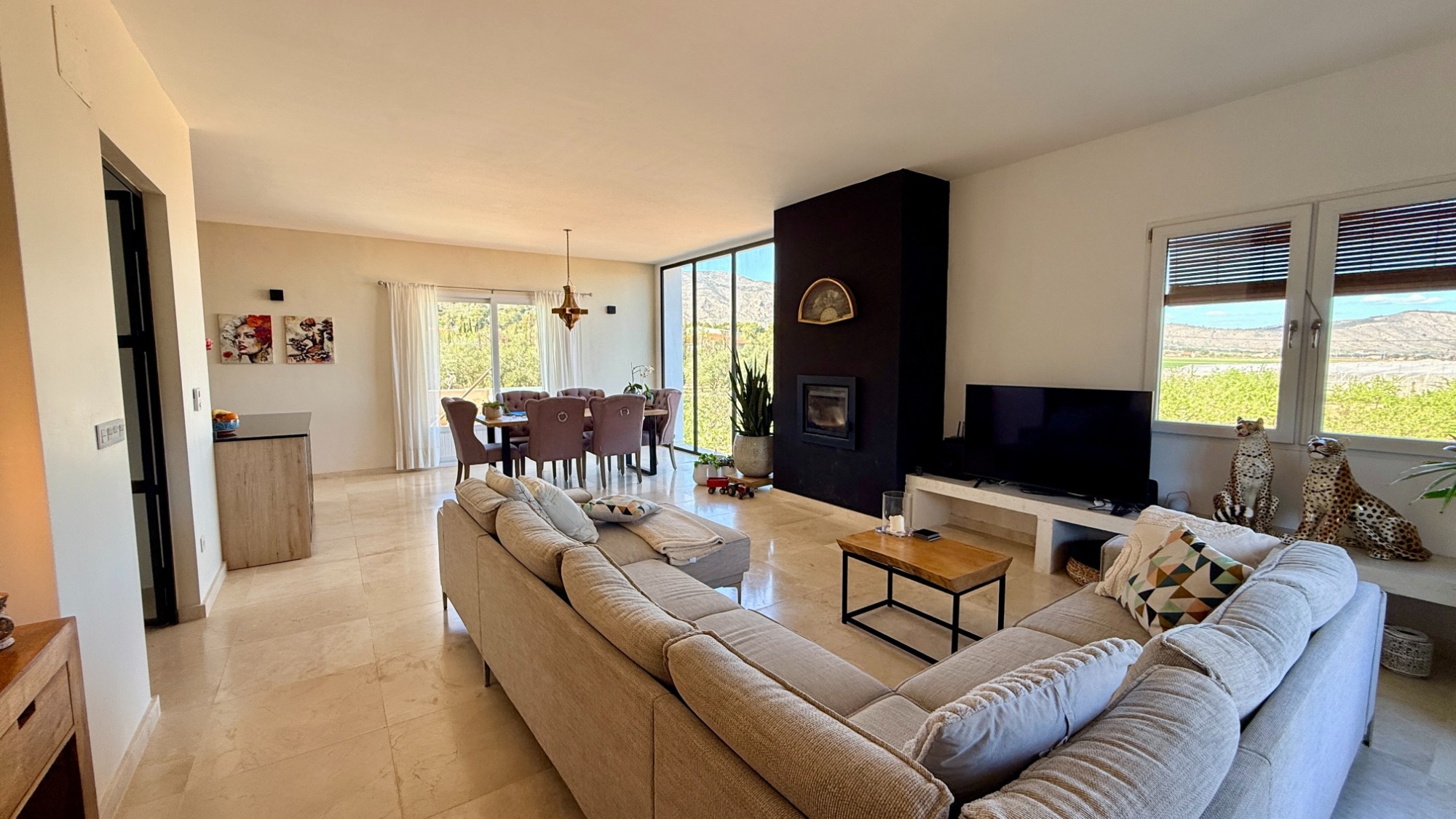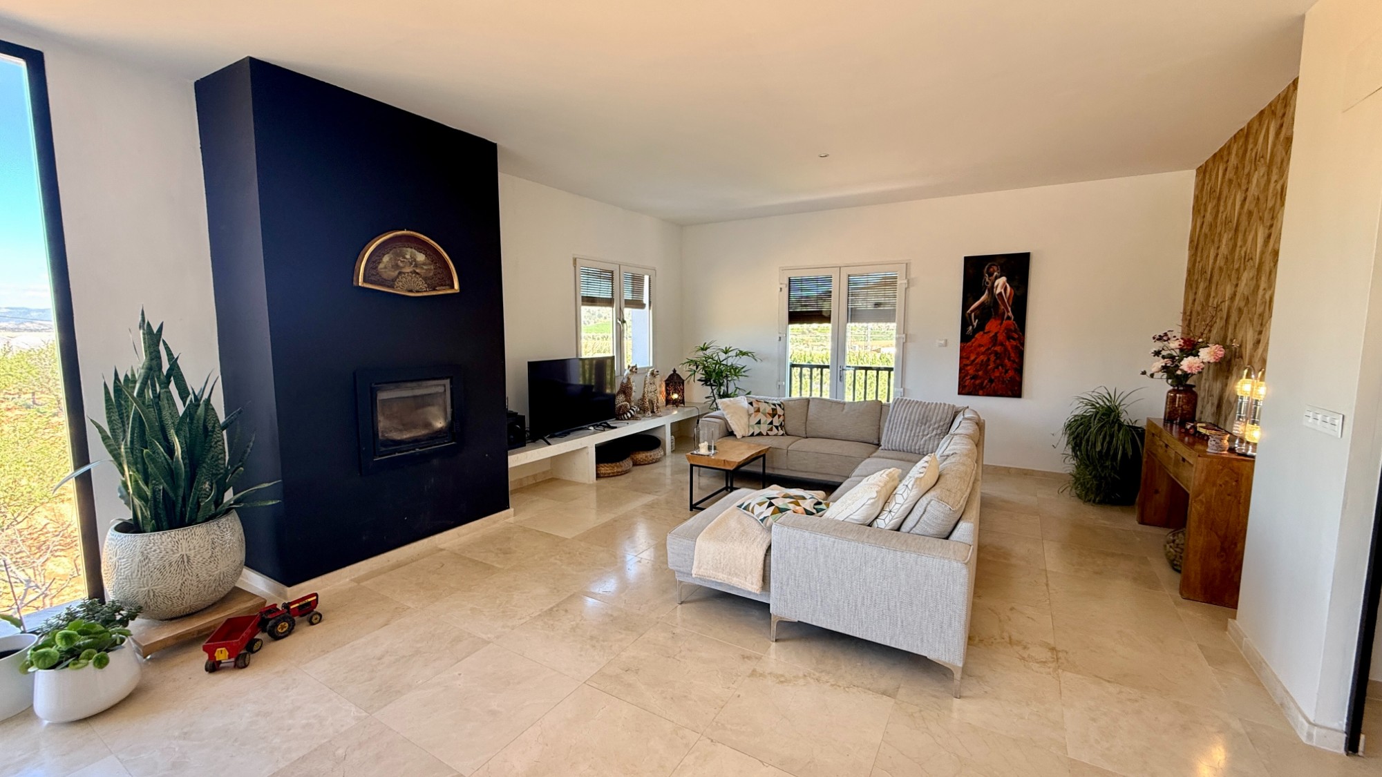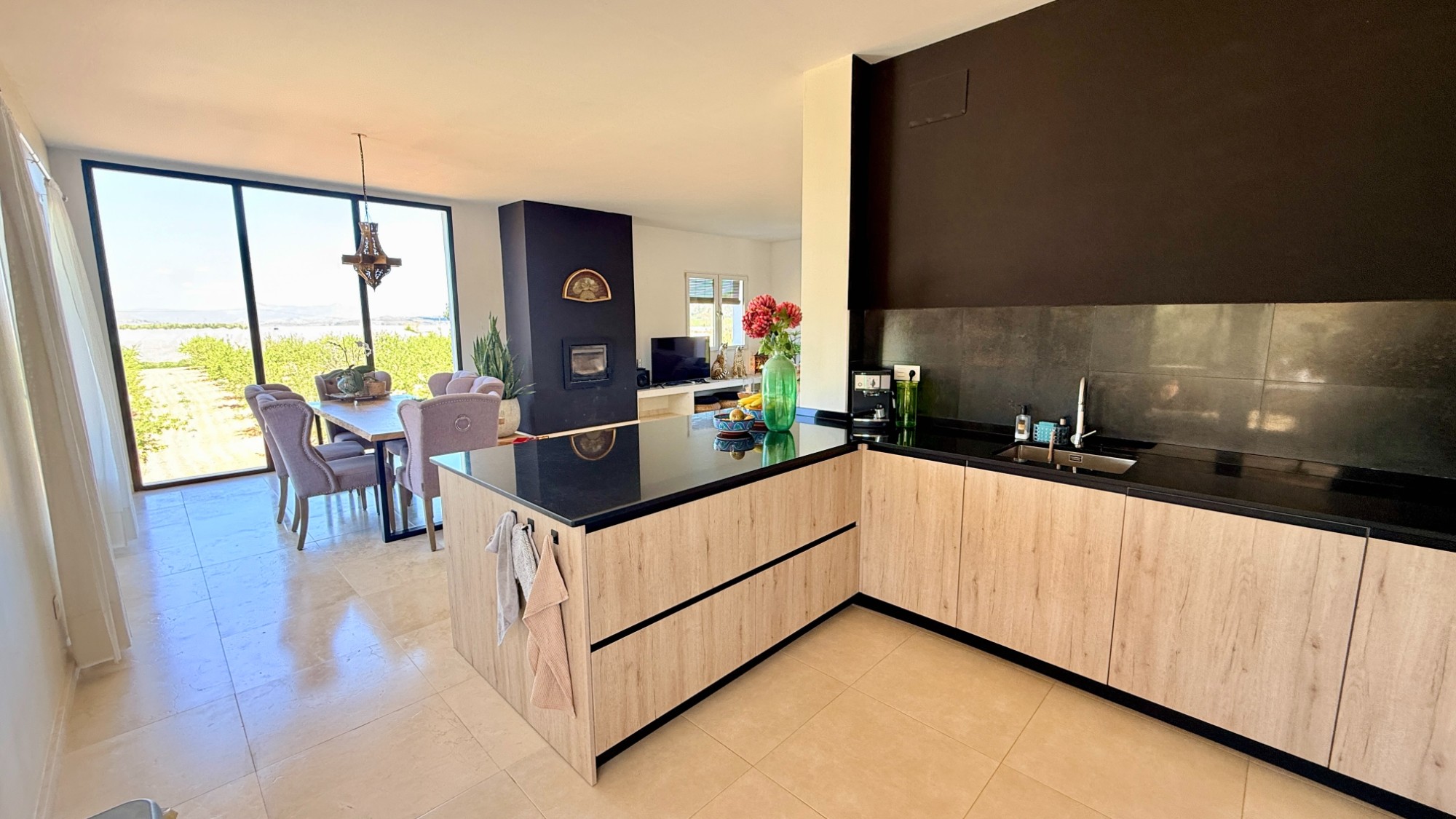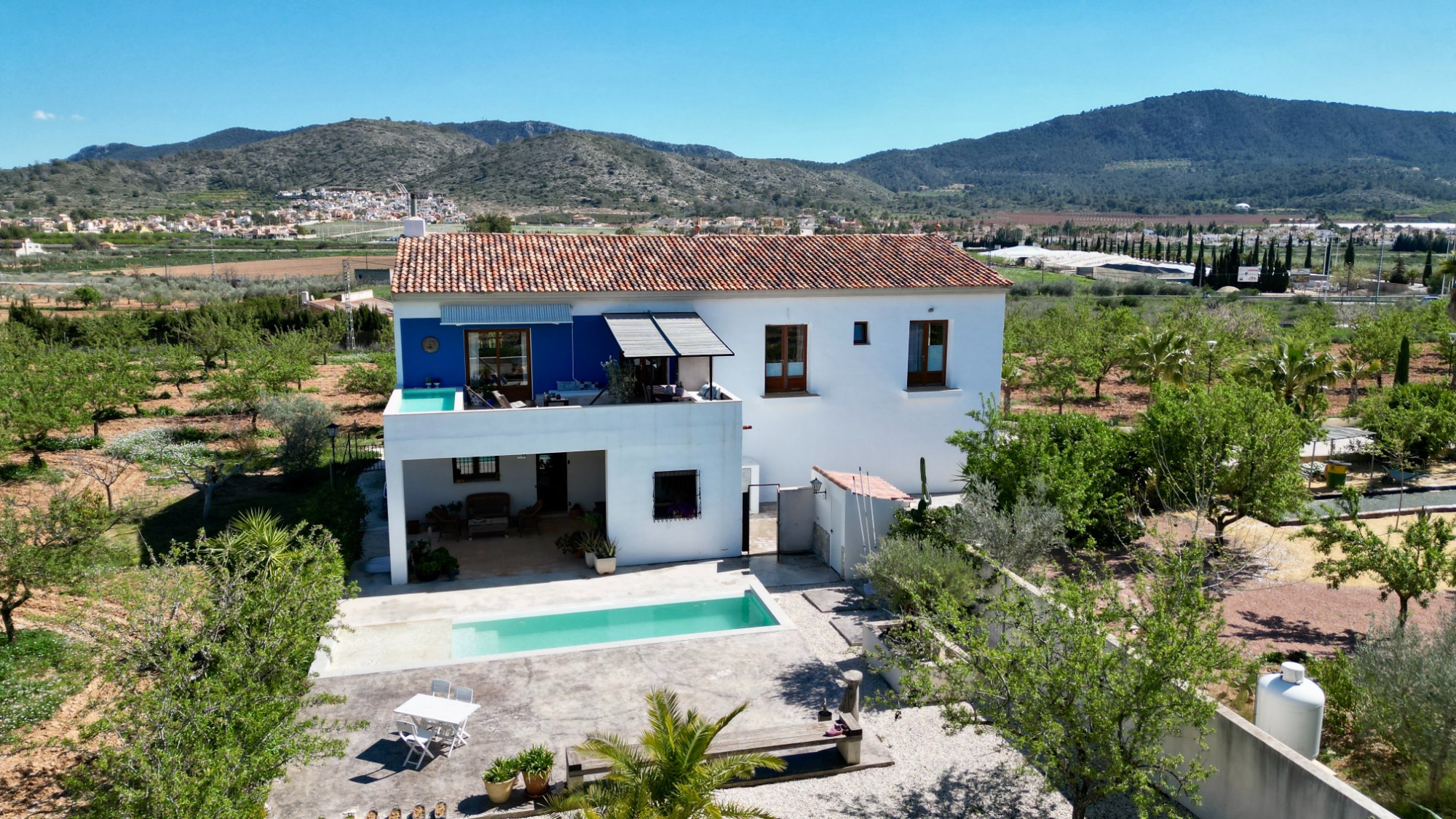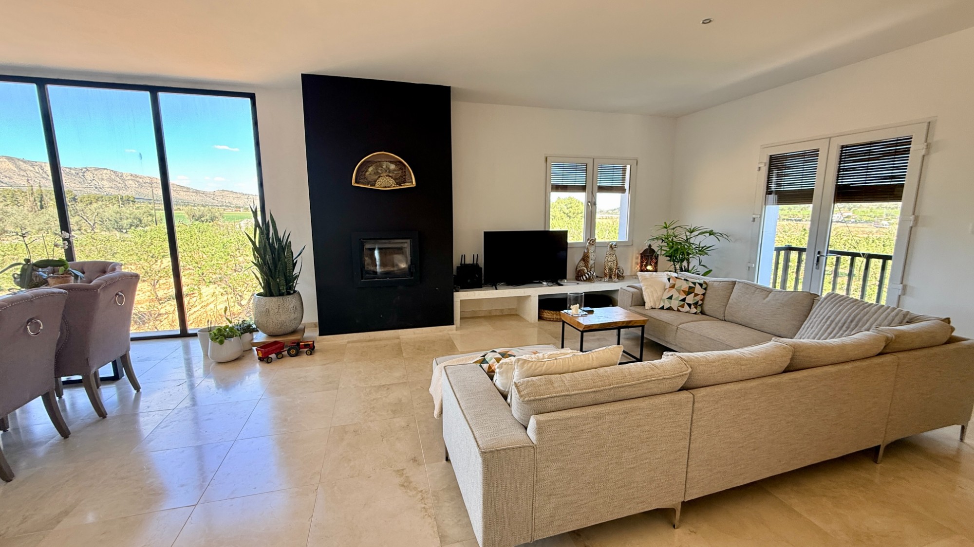 Set discreetly within its own 12,600m² private estate, surrounded by approximately 200 productive almond trees, this exceptional finca-style villa offers a rare fusion of traditional Mediterranean charm and contemporary design. Located between the charming villages of Hondón de las Nieves and Hondón de los Frailes, the property provides complete tranquillity while remaining just minutes from restaurants, cafés and local amenities. From the moment you arrive through the remote-controlled sliding entrance gate, the sense of space and exclusivity is immediately clear. A palm-lined driveway leads through the grounds towards the villa, with ample guest parking and two garages accommodating up to three vehicles. This is a property designed for those who appreciate both elegant architecture and effortless entertaining. The Main Villa – Elevated Living with Panoramic Views The principal living accommodation is located on the first floor, designed to maximise the spectacular views across your own almond grove and the surrounding Hondón Valley. Entering through the foyer, you are welcomed into a central hallway leading to a magnificent open-plan living and dining space. Large feature windows flood the room with natural light while framing the landscape beyond. The living area flows seamlessly into a bespoke designer kitchen, finished in luxurious dark tones with generous work surfaces, high-quality appliances and extensive storage – ideal for both everyday living and entertaining guests. Step outside onto the expansive first-floor terrace, where the lifestyle this home offers truly comes to life. Here you will find: • A private 5m balcony swimming pool• Outdoor dining area• BBQ and entertaining space• Sunbathing terrace with panoramic valley views Imagine cooling off in the pool while overlooking your own almond grove, or enjoying long Mediterranean evenings dining under the stars. Bedrooms Designed for Comfort and Style The main floor offers three spacious double bedrooms. The master suite provides a luxurious retreat, featuring: • Double vanity unit• Walk-in shower• Bathtub• Elegant contemporary finishes Two further double bedrooms of which one is en-suite share a beautifully designed shower room, while guests are catered for with a stylish boutique guest cloakroom. Guest Apartment and Flexible Living Spaces On the ground floor, the villa offers a fully self-contained guest apartment, ideal for visitors, extended family or independent accommodation. This area includes: • Two double bedrooms• Bathroom• Fully equipped kitchen• Lounge and dining area• Pellet burner and fireplace In addition, the lower level also includes: • A beauty studio with bathroom (easily converted into an additional guest suite)• Storage areas and utility rooms• A shaded outdoor dining and bar area• Access to the main pool terrace With these flexible spaces, the property could potentially offer up to seven bedrooms, or alternatively provide space for: • A private office• Gym or wellness studio• Art or music studio• Hobby room Outdoor Living – Designed for Entertaining The exterior of the property is equally impressive and designed around outdoor living. The main swimming pool area is the focal point for entertaining, featuring: • A 9-metre swimming pool with beach-style entry• Large sunbathing terrace• Shaded dining and BBQ areas• Outdoor bar area perfect for summer gatherings With over 300 days of sunshine per year, the Hondón Valley offers the perfect setting for enjoying this exceptional outdoor lifestyle. Private Estate Living The villa sits on a 12,600m² plot, with approximately 12,000m² securely fenced. The almond grove can be easily maintained by a local farmer if desired, allowing you to enjoy the beauty of the land without the responsibility of managing it yourself. During spring, when the almond trees blossom, the landscape transforms into a spectacular display of colour – a truly special experience. Modern Comforts Despite its traditional finca-inspired architecture, the villa offers modern comfort throughout, including: • Mains drinking water• Irrigation water supply• Mains electricity and gas• Underfloor heating• Fast and reliable internet• Modern sewage system The property is being sold unfurnished, although selected furniture may be available via separate negotiation. Location The villa enjoys a privileged position in the heart of the Hondón Valley, one of the most desirable inland areas of Alicante. Within five minutes, you will find more than 25 bars, restaurants and cafés, while Alicante airport and the Mediterranean coast are just over 30 minutes away. This exceptional property offers the rare combination of privacy, space, design and accessibility, making it an ideal permanent residence or luxury countryside retreat. Viewings are strictly by appointment only. If you would like to experience this unique villa in person, please contact us directly for further information.
