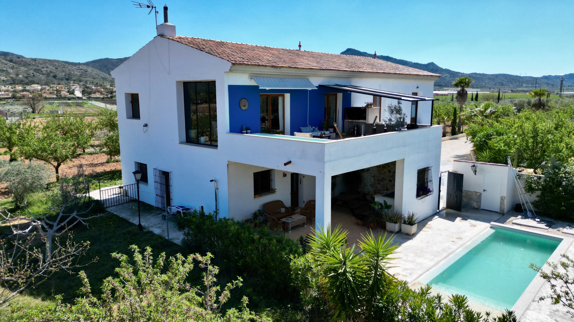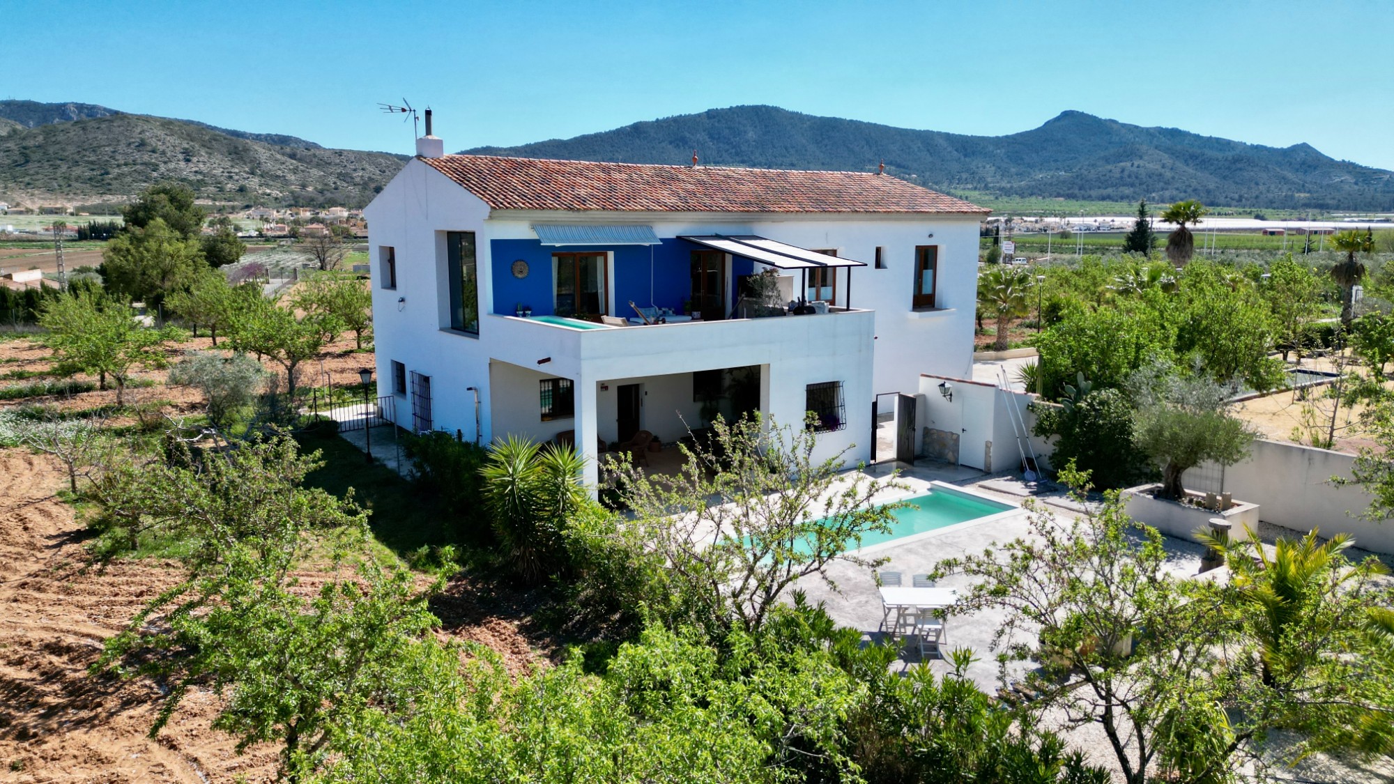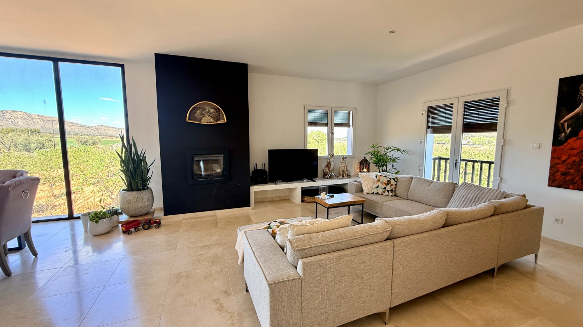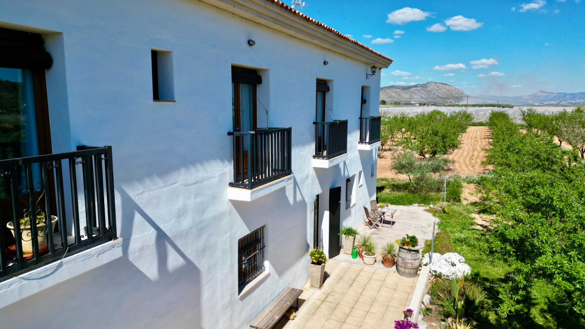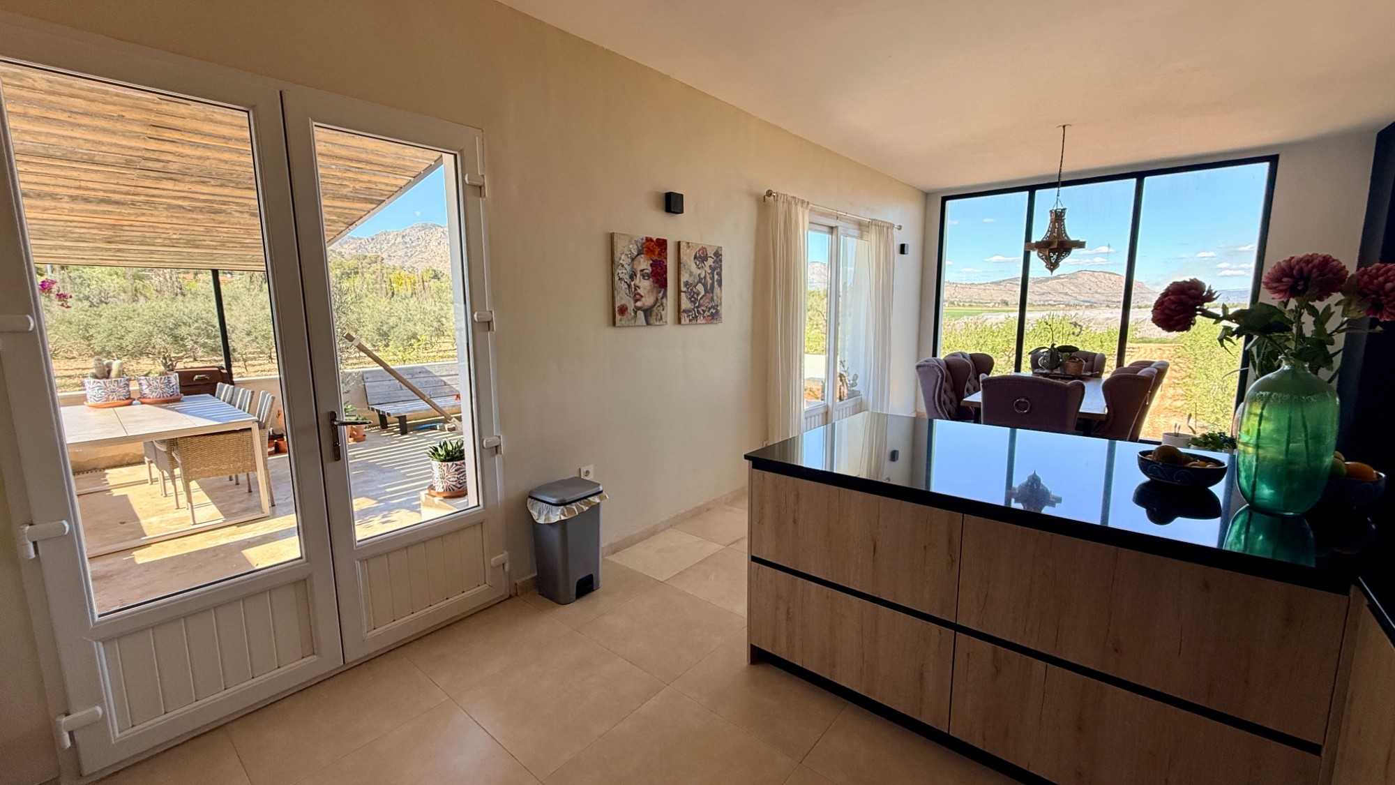 Set discreetly within its own 12,600m² private estate, surrounded by approximately 200 productive almond trees, this exceptional finca-style villa offers a rare fusion of traditional Mediterranean charm and contemporary design. Located between the charming villages of Hondón de las Nieves and Hondón de los Frailes, the property provides complete tranquillity while remaining just minutes from restaurants, cafés and local amenities. From the moment you arrive through the remote-controlled sliding entrance gate, the sense of space and exclusivity is immediately clear. A palm-lined driveway leads through the grounds towards the villa, with ample guest parking and two garages accommodating up to three vehicles. This is a property designed for those who appreciate both elegant architecture and effortless entertaining. The Main Villa – Elevated Living with Panoramic Views The principal living accommodation is located on the first floor, designed to maximise the spectacular views across your own almond grove and the surrounding Hondón Valley. Entering through the foyer, you are welcomed into a central hallway leading to a magnificent open-plan living and dining space. Large feature windows flood the room with natural light while framing the landscape beyond. The living area flows seamlessly into a bespoke designer kitchen, finished in luxurious dark tones with generous work surfaces, high-quality appliances and extensive storage – ideal for both everyday living and entertaining guests. Step outside onto the expansive first-floor terrace, where the lifestyle this home offers truly comes to life. Here you will find: • A private 5m balcony swimming pool• Outdoor dining area• BBQ and entertaining space• Sunbathing terrace with panoramic valley views Imagine cooling off in the pool while overlooking your own almond grove, or enjoying long Mediterranean evenings dining under the stars. Bedrooms Designed for Comfort and Style The main floor offers three spacious double bedrooms. The master suite provides a luxurious retreat, featuring: • Double vanity unit• Walk-in shower• Bathtub• Elegant contemporary finishes Two further double bedrooms of which one is en-suite share a beautifully designed shower room, while guests are catered for with a stylish boutique guest cloakroom. Guest Apartment and Flexible Living Spaces On the ground floor, the villa offers a fully self-contained guest apartment, ideal for visitors, extended family or independent accommodation. This area includes: • Two double bedrooms• Bathroom• Fully equipped kitchen• Lounge and dining area• Pellet burner and fireplace In addition, the lower level also includes: • A beauty studio with bathroom (easily converted into an additional guest suite)• Storage areas and utility rooms• A shaded outdoor dining and bar area• Access to the main pool terrace With these flexible spaces, the property could potentially offer up to seven bedrooms, or alternatively provide space for: • A private office• Gym or wellness studio• Art or music studio• Hobby room Outdoor Living – Designed for Entertaining The exterior of the property is equally impressive and designed around outdoor living. The main swimming pool area is the focal point for entertaining, featuring: • A 9-metre swimming pool with beach-style entry• Large sunbathing terrace• Shaded dining and BBQ areas• Outdoor bar area perfect for summer gatherings With over 300 days of sunshine per year, the Hondón Valley offers the perfect setting for enjoying this exceptional outdoor lifestyle. Private Estate Living The villa sits on a 12,600m² plot, with approximately 12,000m² securely fenced. The almond grove can be easily maintained by a local farmer if desired, allowing you to enjoy the beauty of the land without the responsibility of managing it yourself. During spring, when the almond trees blossom, the landscape transforms into a spectacular display of colour – a truly special experience. Modern Comforts Despite its traditional finca-inspired architecture, the villa offers modern comfort throughout, including: • Mains drinking water• Irrigation water supply• Mains electricity and gas• Underfloor heating• Fast and reliable internet• Modern sewage system The property is being sold unfurnished, although selected furniture may be available via separate negotiation. Location The villa enjoys a privileged position in the heart of the Hondón Valley, one of the most desirable inland areas of Alicante. Within five minutes, you will find more than 25 bars, restaurants and cafés, while Alicante airport and the Mediterranean coast are just over 30 minutes away. This exceptional property offers the rare combination of privacy, space, design and accessibility, making it an ideal permanent residence or luxury countryside retreat. Viewings are strictly by appointment only. If you would like to experience this unique villa in person, please contact us directly for further information.