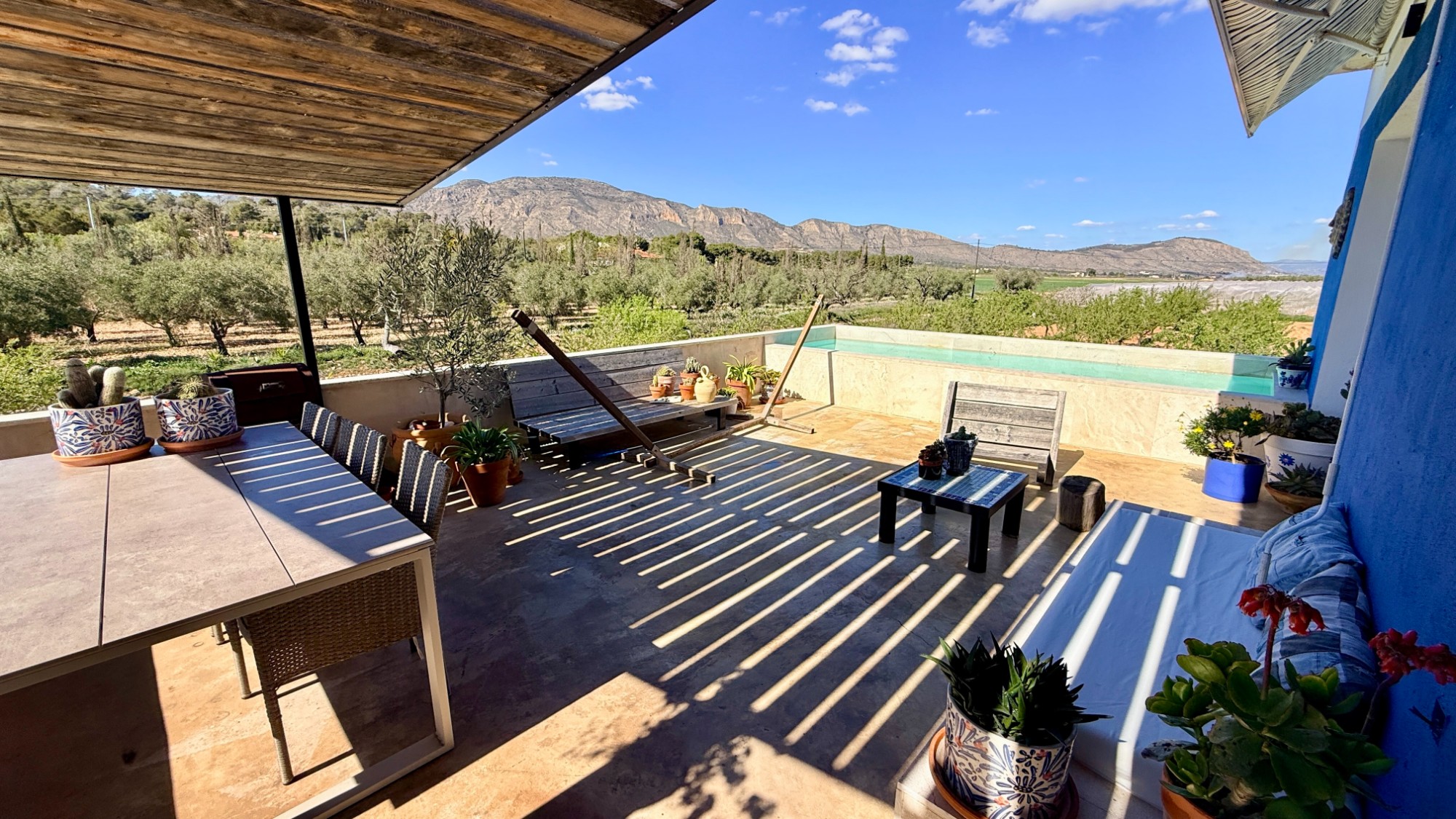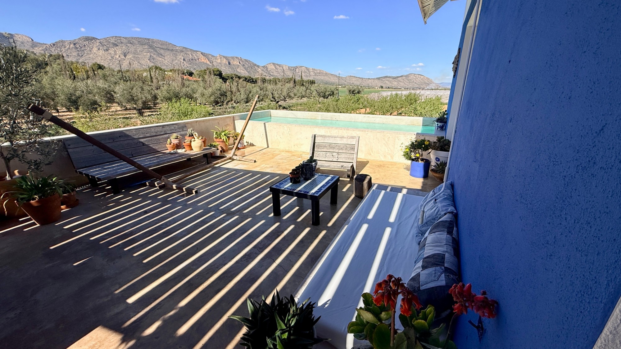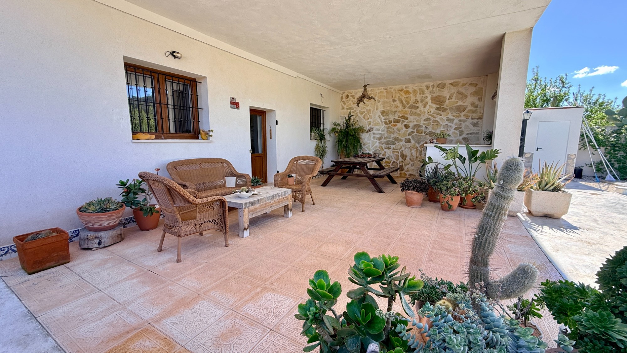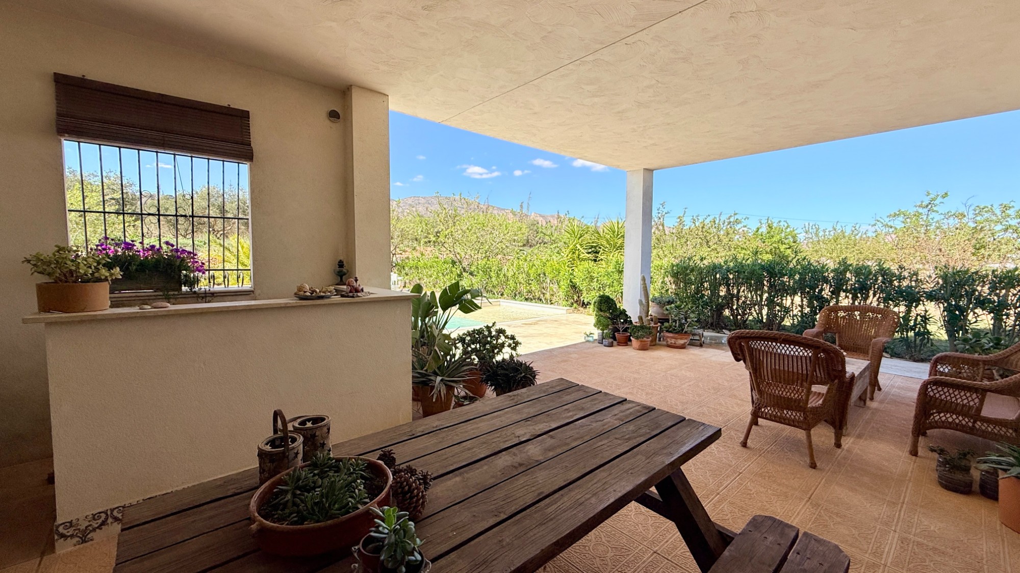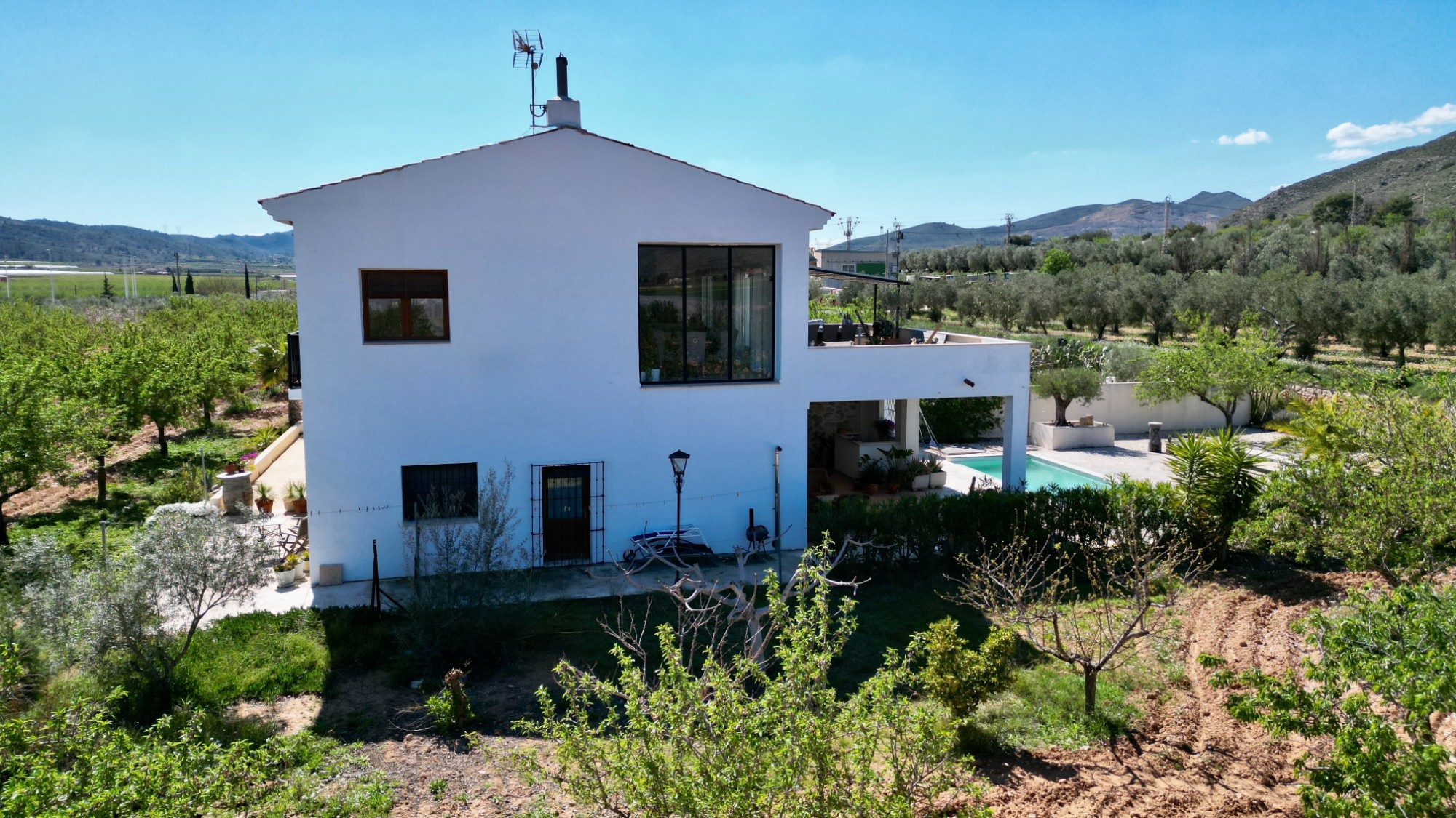 Set discreetly within its own 12,600m² private estate, surrounded by approximately 200 productive almond trees, this exceptional finca-style villa offers a rare fusion of traditional Mediterranean charm and contemporary design. Located between the charming villages of Hondón de las Nieves and Hondón de los Frailes, the property provides complete tranquillity while remaining just minutes from restaurants, cafés and local amenities. From the moment you arrive through the remote-controlled sliding entrance gate, the sense of space and exclusivity is immediately clear. A palm-lined driveway leads through the grounds towards the villa, with ample guest parking and two garages accommodating up to three vehicles. This is a property designed for those who appreciate both elegant architecture and effortless entertaining. The Main Villa – Elevated Living with Panoramic Views The principal living accommodation is located on the first floor, designed to maximise the spectacular views across your own almond grove and the surrounding Hondón Valley. Entering through the foyer, you are welcomed into a central hallway leading to a magnificent open-plan living and dining space. Large feature windows flood the room with natural light while framing the landscape beyond. The living area flows seamlessly into a bespoke designer kitchen, finished in luxurious dark tones with generous work surfaces, high-quality appliances and extensive storage – ideal for both everyday living and entertaining guests. Step outside onto the expansive first-floor terrace, where the lifestyle this home offers truly comes to life. Here you will find: • A private 5m balcony swimming pool• Outdoor dining area• BBQ and entertaining space• Sunbathing terrace with panoramic valley views Imagine cooling off in the pool while overlooking your own almond grove, or enjoying long Mediterranean evenings dining under the stars. Bedrooms Designed for Comfort and Style The main floor offers three spacious double bedrooms. The master suite provides a luxurious retreat, featuring: • Double vanity unit• Walk-in shower• Bathtub• Elegant contemporary finishes Two further double bedrooms of which one is en-suite share a beautifully designed shower room, while guests are catered for with a stylish boutique guest cloakroom. Guest Apartment and Flexible Living Spaces On the ground floor, the villa offers a fully self-contained guest apartment, ideal for visitors, extended family or independent accommodation. This area includes: • Two double bedrooms• Bathroom• Fully equipped kitchen• Lounge and dining area• Pellet burner and fireplace In addition, the lower level also includes: • A beauty studio with bathroom (easily converted into an additional guest suite)• Storage areas and utility rooms• A shaded outdoor dining and bar area• Access to the main pool terrace With these flexible spaces, the property could potentially offer up to seven bedrooms, or alternatively provide space for: • A private office• Gym or wellness studio• Art or music studio• Hobby room Outdoor Living – Designed for Entertaining The exterior of the property is equally impressive and designed around outdoor living. The main swimming pool area is the focal point for entertaining, featuring: • A 9-metre swimming pool with beach-style entry• Large sunbathing terrace• Shaded dining and BBQ areas• Outdoor bar area perfect for summer gatherings With over 300 days of sunshine per year, the Hondón Valley offers the perfect setting for enjoying this exceptional outdoor lifestyle. Private Estate Living The villa sits on a 12,600m² plot, with approximately 12,000m² securely fenced. The almond grove can be easily maintained by a local farmer if desired, allowing you to enjoy the beauty of the land without the responsibility of managing it yourself. During spring, when the almond trees blossom, the landscape transforms into a spectacular display of colour – a truly special experience. Modern Comforts Despite its traditional finca-inspired architecture, the villa offers modern comfort throughout, including: • Mains drinking water• Irrigation water supply• Mains electricity and gas• Underfloor heating• Fast and reliable internet• Modern sewage system The property is being sold unfurnished, although selected furniture may be available via separate negotiation. Location The villa enjoys a privileged position in the heart of the Hondón Valley, one of the most desirable inland areas of Alicante. Within five minutes, you will find more than 25 bars, restaurants and cafés, while Alicante airport and the Mediterranean coast are just over 30 minutes away. This exceptional property offers the rare combination of privacy, space, design and accessibility, making it an ideal permanent residence or luxury countryside retreat. Viewings are strictly by appointment only. If you would like to experience this unique villa in person, please contact us directly for further information.