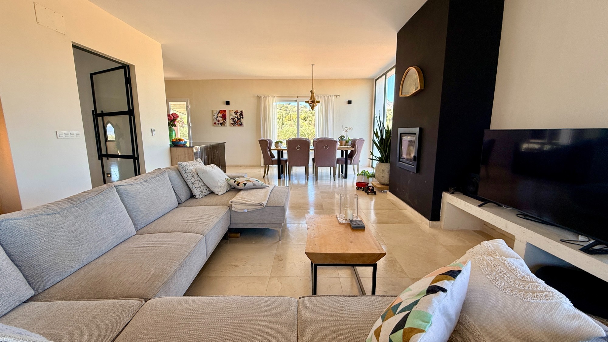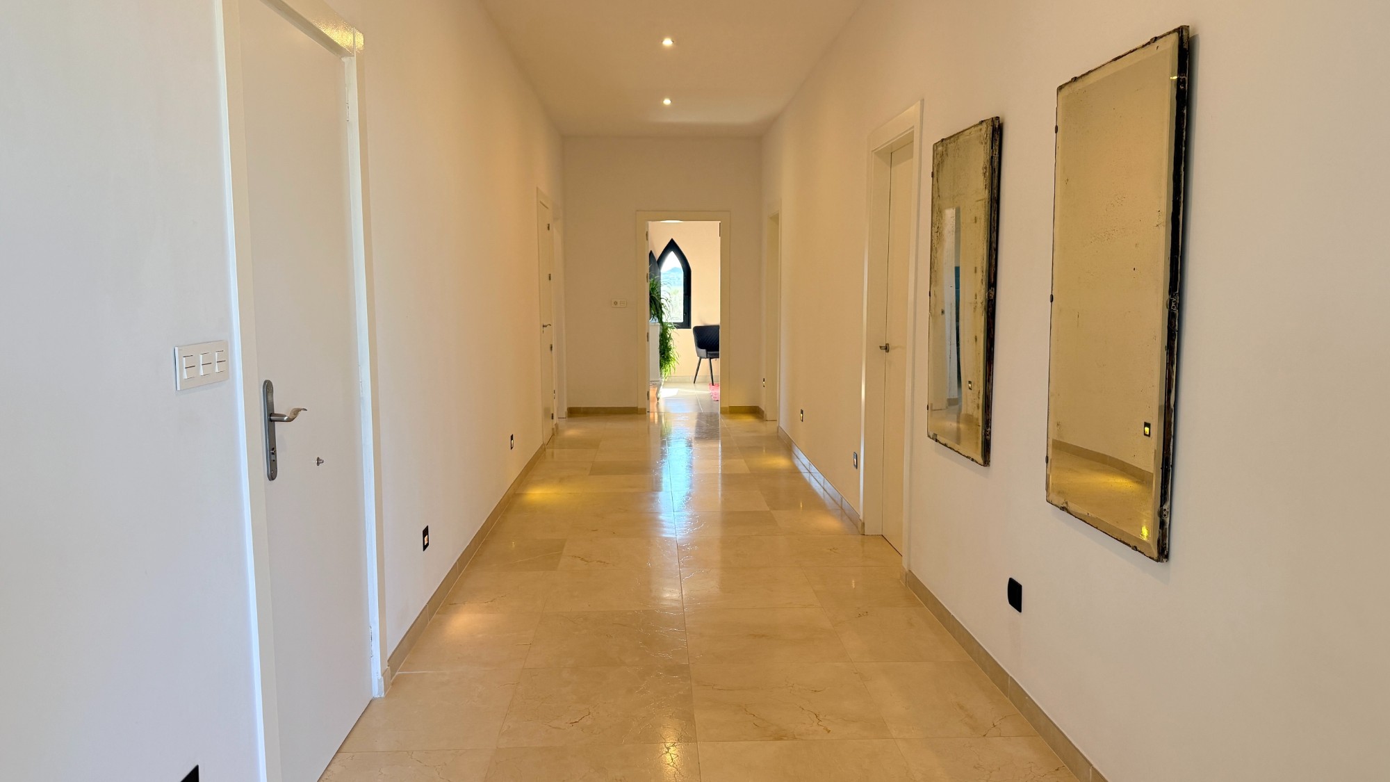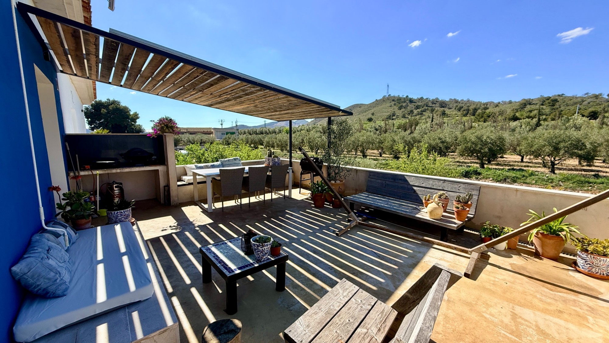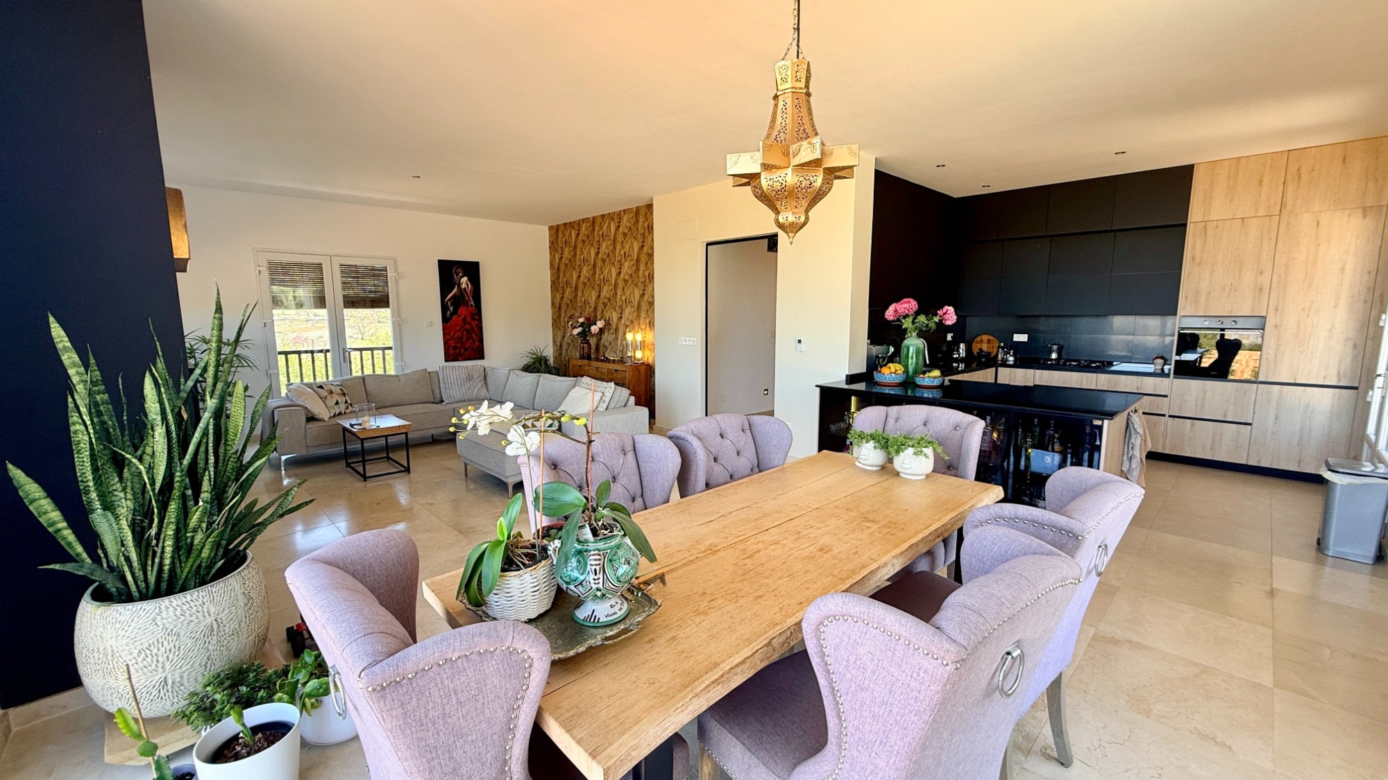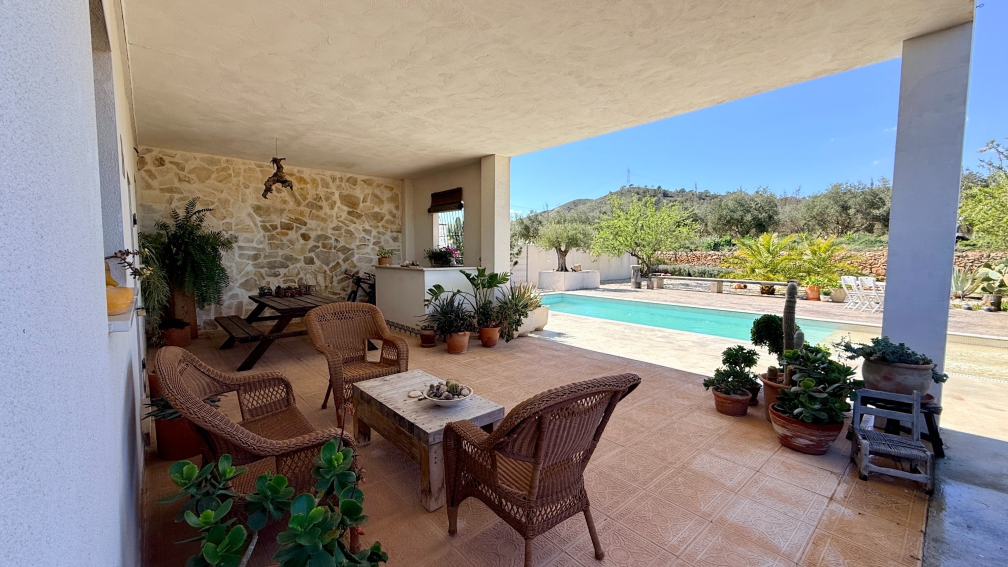 Set discreetly within its own 12,600m² private estate, surrounded by approximately 200 productive almond trees, this exceptional finca-style villa offers a rare fusion of traditional Mediterranean charm and contemporary design. Located between the charming villages of Hondón de las Nieves and Hondón de los Frailes, the property provides complete tranquillity while remaining just minutes from restaurants, cafés and local amenities. From the moment you arrive through the remote-controlled sliding entrance gate, the sense of space and exclusivity is immediately clear. A palm-lined driveway leads through the grounds towards the villa, with ample guest parking and two garages accommodating up to three vehicles. This is a property designed for those who appreciate both elegant architecture and effortless entertaining. The Main Villa – Elevated Living with Panoramic Views The principal living accommodation is located on the first floor, designed to maximise the spectacular views across your own almond grove and the surrounding Hondón Valley. Entering through the foyer, you are welcomed into a central hallway leading to a magnificent open-plan living and dining space. Large feature windows flood the room with natural light while framing the landscape beyond. The living area flows seamlessly into a bespoke designer kitchen, finished in luxurious dark tones with generous work surfaces, high-quality appliances and extensive storage – ideal for both everyday living and entertaining guests. Step outside onto the expansive first-floor terrace, where the lifestyle this home offers truly comes to life. Here you will find: • A private 5m balcony swimming pool• Outdoor dining area• BBQ and entertaining space• Sunbathing terrace with panoramic valley views Imagine cooling off in the pool while overlooking your own almond grove, or enjoying long Mediterranean evenings dining under the stars. Bedrooms Designed for Comfort and Style The main floor offers three spacious double bedrooms. The master suite provides a luxurious retreat, featuring: • Double vanity unit• Walk-in shower• Bathtub• Elegant contemporary finishes Two further double bedrooms of which one is en-suite share a beautifully designed shower room, while guests are catered for with a stylish boutique guest cloakroom. Guest Apartment and Flexible Living Spaces On the ground floor, the villa offers a fully self-contained guest apartment, ideal for visitors, extended family or independent accommodation. This area includes: • Two double bedrooms• Bathroom• Fully equipped kitchen• Lounge and dining area• Pellet burner and fireplace In addition, the lower level also includes: • A beauty studio with bathroom (easily converted into an additional guest suite)• Storage areas and utility rooms• A shaded outdoor dining and bar area• Access to the main pool terrace With these flexible spaces, the property could potentially offer up to seven bedrooms, or alternatively provide space for: • A private office• Gym or wellness studio• Art or music studio• Hobby room Outdoor Living – Designed for Entertaining The exterior of the property is equally impressive and designed around outdoor living. The main swimming pool area is the focal point for entertaining, featuring: • A 9-metre swimming pool with beach-style entry• Large sunbathing terrace• Shaded dining and BBQ areas• Outdoor bar area perfect for summer gatherings With over 300 days of sunshine per year, the Hondón Valley offers the perfect setting for enjoying this exceptional outdoor lifestyle. Private Estate Living The villa sits on a 12,600m² plot, with approximately 12,000m² securely fenced. The almond grove can be easily maintained by a local farmer if desired, allowing you to enjoy the beauty of the land without the responsibility of managing it yourself. During spring, when the almond trees blossom, the landscape transforms into a spectacular display of colour – a truly special experience. Modern Comforts Despite its traditional finca-inspired architecture, the villa offers modern comfort throughout, including: • Mains drinking water• Irrigation water supply• Mains electricity and gas• Underfloor heating• Fast and reliable internet• Modern sewage system The property is being sold unfurnished, although selected furniture may be available via separate negotiation. Location The villa enjoys a privileged position in the heart of the Hondón Valley, one of the most desirable inland areas of Alicante. Within five minutes, you will find more than 25 bars, restaurants and cafés, while Alicante airport and the Mediterranean coast are just over 30 minutes away. This exceptional property offers the rare combination of privacy, space, design and accessibility, making it an ideal permanent residence or luxury countryside retreat. Viewings are strictly by appointment only. If you would like to experience this unique villa in person, please contact us directly for further information.