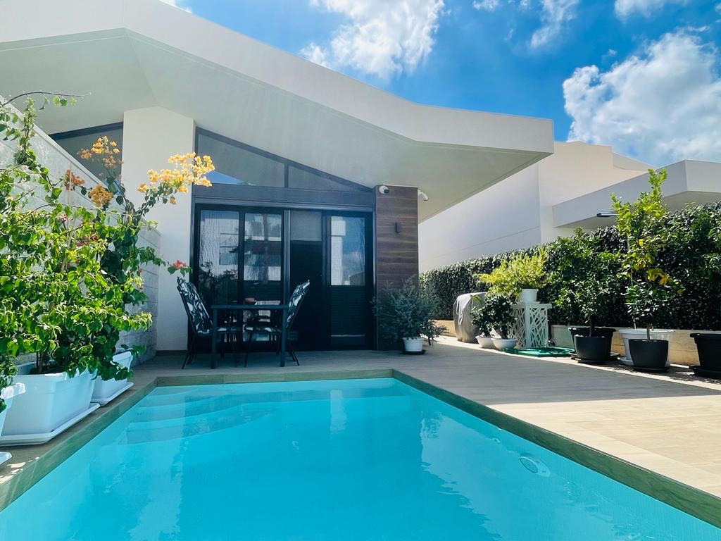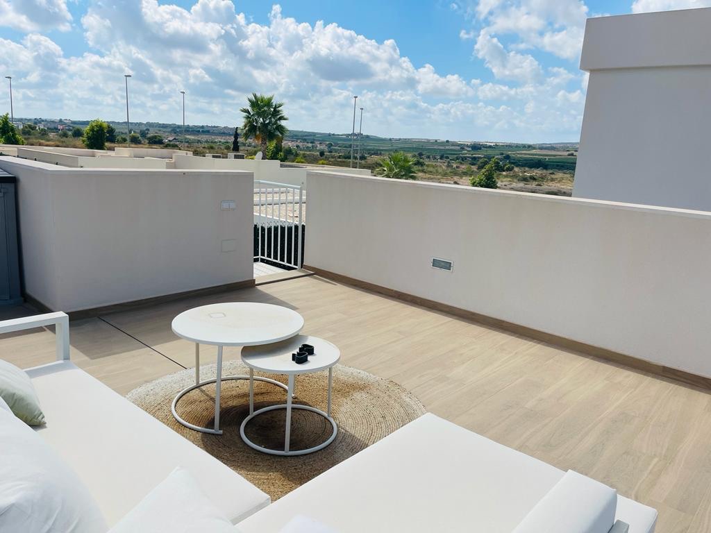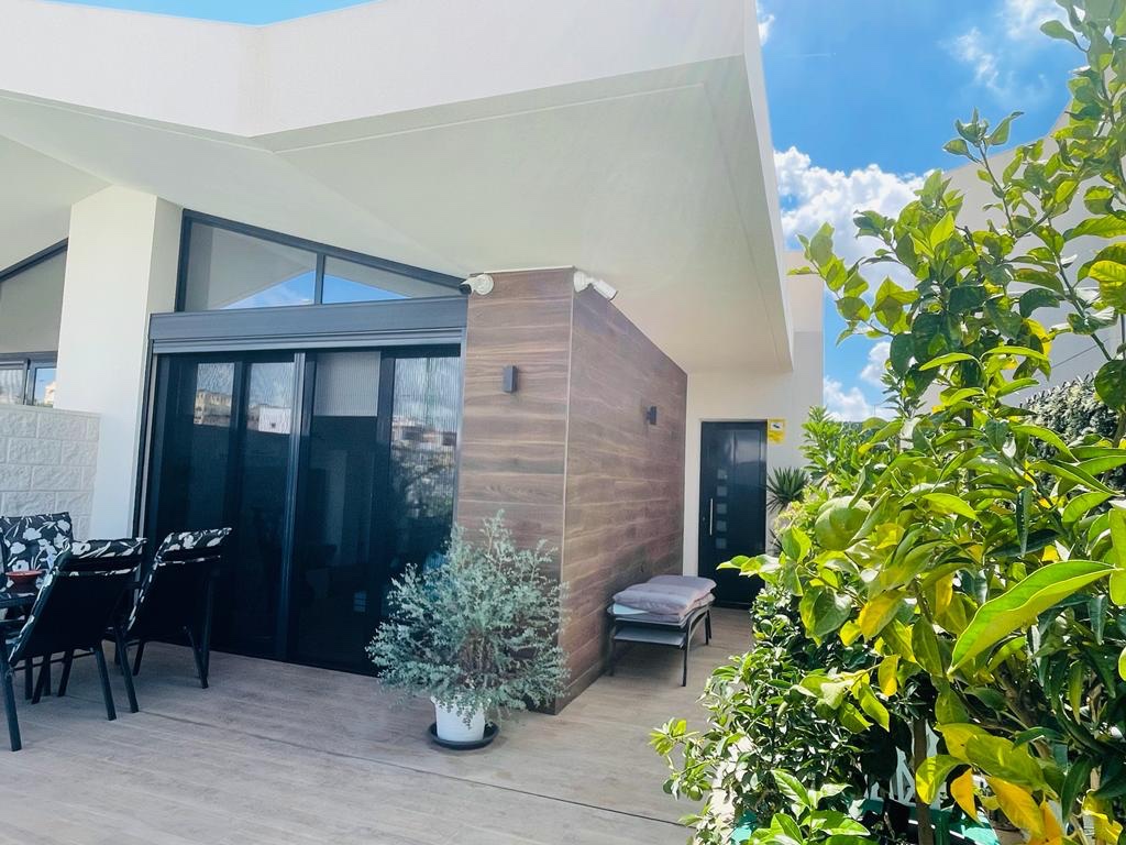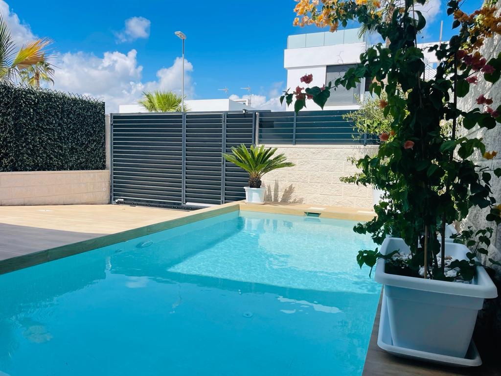 Cette villa jumelée est bien située à distance de marche du centre de Benijofar où vous avez tout à portée de main, restaurants, bars, pharmacie, médecin et à seulement 15 minutes en voiture de la plage de Guardamar, c'est la maison idéale pour se détendre . se sentir à la maison. Vous entrez par un portail automatique avec votre propre piscine privée sur votre gauche pour vous détendre lors des chaudes soirées d'été, plus loin vous entrez dans le hall avec vestiaire, qui vous mène au lumineux salon/salle à manger avec cuisine ouverte équipée d'appareils de qualité Bosch ! derrière la cuisine on trouve la chambre principale avec sa salle de bain attenante avec douche de l'autre côté on a la 2ème chambre et sa salle de bain également avec douche. A l'extérieur vous profiterez d'un grand jardin carrelé avec piscine et d'un beau grand solarium pour divertir vos amis et votre famille N'hésitez plus et visitez ce bijou dès aujourd'hui !
