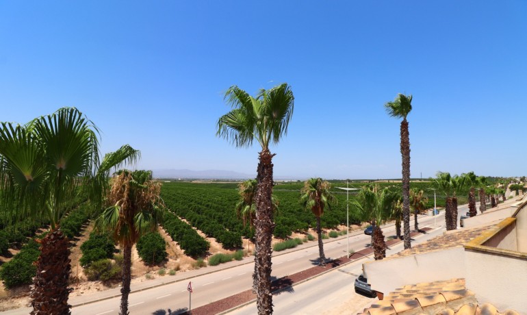 Cette villa mitoyenne de trois chambres, exposée sud-est, est située au sein du complexe hôtelier et spa 5 étoiles La Finca Golf, à seulement quelques minutes en voiture du charmant village d'Algorfa. L'hôtel 5 étoiles, le spa et le parcours de golf sont à 7 minutes à pied, tandis que de nombreux restaurants, cafés-bars et boutiques sont accessibles en 3 minutes. Quesada et Benijofar sont à seulement 10 minutes en voiture, et les magnifiques plages de la Costa Blanca Sud sont à environ 20 minutes. Cette villa de 100 m², accessible par l'avant et l'arrière, offre une vue imprenable sur le parcours de golf, les immenses plantations d'agrumes et les montagnes. Le spacieux séjour, doté d'un plafond aux poutres apparentes, d'une cheminée à foyer ouvert et de doubles portes-fenêtres coulissantes donnant sur le jardin, crée une atmosphère chaleureuse et accueillante. Un escalier mène du salon au premier étage. La cuisine séparée, équipée et fonctionnelle, est dotée d'une buanderie attenante. Au rez-de-chaussée se trouvent également une chambre double et une salle de douche moderne. À l'étage, vous trouverez deux autres chambres doubles, toutes deux avec accès à des terrasses, dont l'une offre une vue imprenable sur les plantations d'agrumes et les montagnes environnantes. Une salle de bain familiale dessert ce niveau, et toutes les chambres bénéficient de placards intégrés, ainsi que de la climatisation canalisée installée dans toute la propriété. Un escalier intérieur mène au solarium privé, idéal pour se détendre ou recevoir avec une vue panoramique. L'extérieur de la villa comprend des jardins avant et arrière, un espace barbecue, un parking hors voirie et un accès à des jardins communs magnifiquement entretenus et à une belle piscine commune, le tout au sein d'une résidence soignée et recherchée. Une opportunité fantastique pour les amateurs de golf et ceux qui recherchent un style de vie paisible et bien desservi dans l'une des régions les plus prisées de la Costa Blanca Sud.