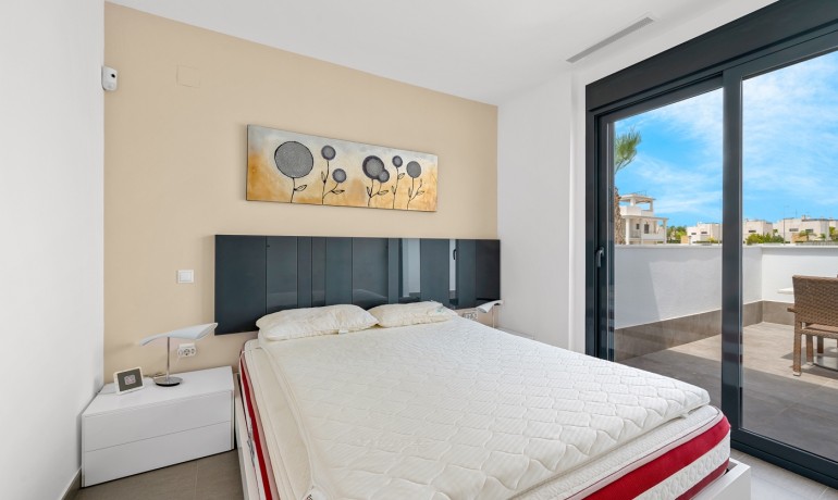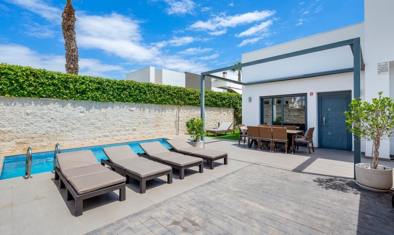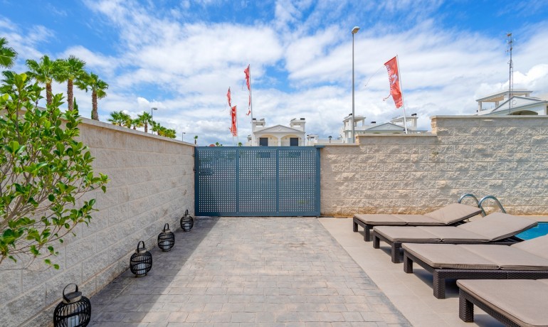 Vrijstaande villa in Ciudad Quesada – 3 slaapkamers, privézwembad Deze prachtige vrijstaande villa, gebouwd in 2013, is gelegen in de gewilde wijk Ciudad Quesada. Met een woonoppervlakte van 120 m² op een perceel van 200 m² biedt de villa een privézwembad, parkeergelegenheid op eigen terrein en modern comfort. De woning verkeert in uitstekende staat – onlangs opnieuw geschilderd en als nieuw onderhouden – en wordt volledig gemeubileerd verkocht. De villa beschikt over 3 slaapkamers en 2 badkamers, inclusief vloerverwarming in beide badkamers en centrale airconditioning in het hele huis. De begane grond bestaat uit een slaapkamer, een ruime woon-/eetkamer met een open keuken en een badkamer. Boven vindt u twee extra slaapkamers, een badkamer en toegang tot een privésolarium met een prachtig uitzicht en onvergetelijke zonsondergangen. Dit huis ligt op slechts enkele minuten van de dichtstbijzijnde supermarkt en op slechts 5 minuten rijden van het centrum van Quesada. Het is ideaal als permanente woning, vakantiehuis of investering.