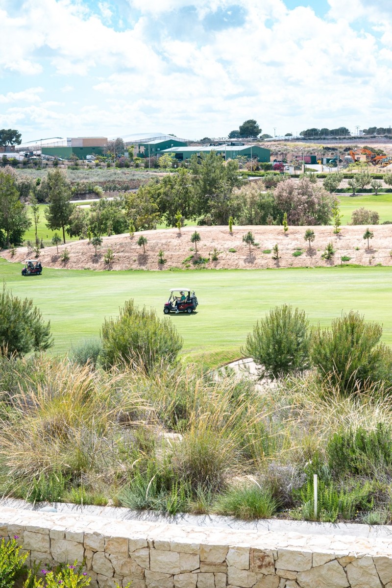 Exclusief golfappartement met panoramisch uitzicht in Lo Romero Golf, Pilar De La Horadada Ontdek het verfijnde mediterrane leven in dit prachtig afgewerkte appartement, ideaal gelegen aan de prestigieuze rand van het Lo Romero Golf Resort. Omgeven door weelderige fairways, open landschappen en zonneschijn het hele jaar door, combineert deze woning perfect rust, luxe en de nabijheid van de kust. Het appartement is licht en ruim, met twee royale slaapkamers en twee moderne badkamers met hoogwaardige afwerking. De hoofdslaapkamer heeft een eigen badkamer, wat extra comfort en privacy biedt. De open woon- en eetkamer loopt naadloos over in een groot, zonovergoten terras met een prachtig uitzicht over de golfbaan en het omliggende groen – ideaal om te ontspannen of gasten te ontvangen. Het pand maakt deel uit van een goed onderhouden wooncomplex met prachtig aangelegde gemeenschappelijke tuinen en een gedeeld zwembad, wat zorgt voor een ontspannen, resortachtige sfeer. Het is uitermate geschikt als vakantiehuis, permanente woning of hoogwaardige investering. Belangrijkste kenmerken: Uitzicht over de golfbaan van Lo Romero Ruim terras met vrij uitzicht Moderne interieurs met luxe afwerkingen Gemeenschappelijk zwembad en groene zones Rustige, maar toch gemakkelijk bereikbare locatie Pilar de la Horadada, ongerepte mediterrane stranden, winkels en restaurants liggen allemaal op korte afstand, waardoor dit appartement een uitstekende uitvalsbasis is voor een comfortabel leven aan de Costa Blanca. De omgeving Pilar de la Horadada, gelegen in het zuiden van Alicante nabij de grens met Murcia, is een charmant kustplaatsje dat authentiek Spaans karakter combineert met mediterrane levendigheid. Met zijn gastvrije sfeer, pittoreske pleinen, wekelijkse lokale markten en uitstekende gastronomie is het een ideale plek voor zowel permanent wonen als een verfijnde vakantie. Vlakbij ligt Lo Romero Golf, een 18-holes championshipbaan die bekendstaat om zijn iconische eilandgreen op de 18e hole. De baan biedt een unieke combinatie van natuur, rust en sportieve uitdaging, geschikt voor golfers van alle niveaus. Prachtige stranden zoals Mil Palmeras, Torre de la Horadada en Las Higuericas liggen op korte rijafstand. Het omliggende platteland biedt ook schilderachtige wandel- en fietsroutes door citrusboomgaarden en langs historische paden. Dankzij het milde klimaat kunt u het hele jaar door van het buitenleven genieten. Deze regio biedt een uitzonderlijke levensstijl waar luxe, natuur, sport en authentieke Spaanse charme perfect samenkomen. Extra's (optioneel): Parkeerplaats: €10.000 Meubels, apparaten en keukengerei: € 20.000 Alles is onderhandelbaar. Is dit wat je zoekt? Neem gerust contact met ons op voor een bezichtiging of meer informatie.