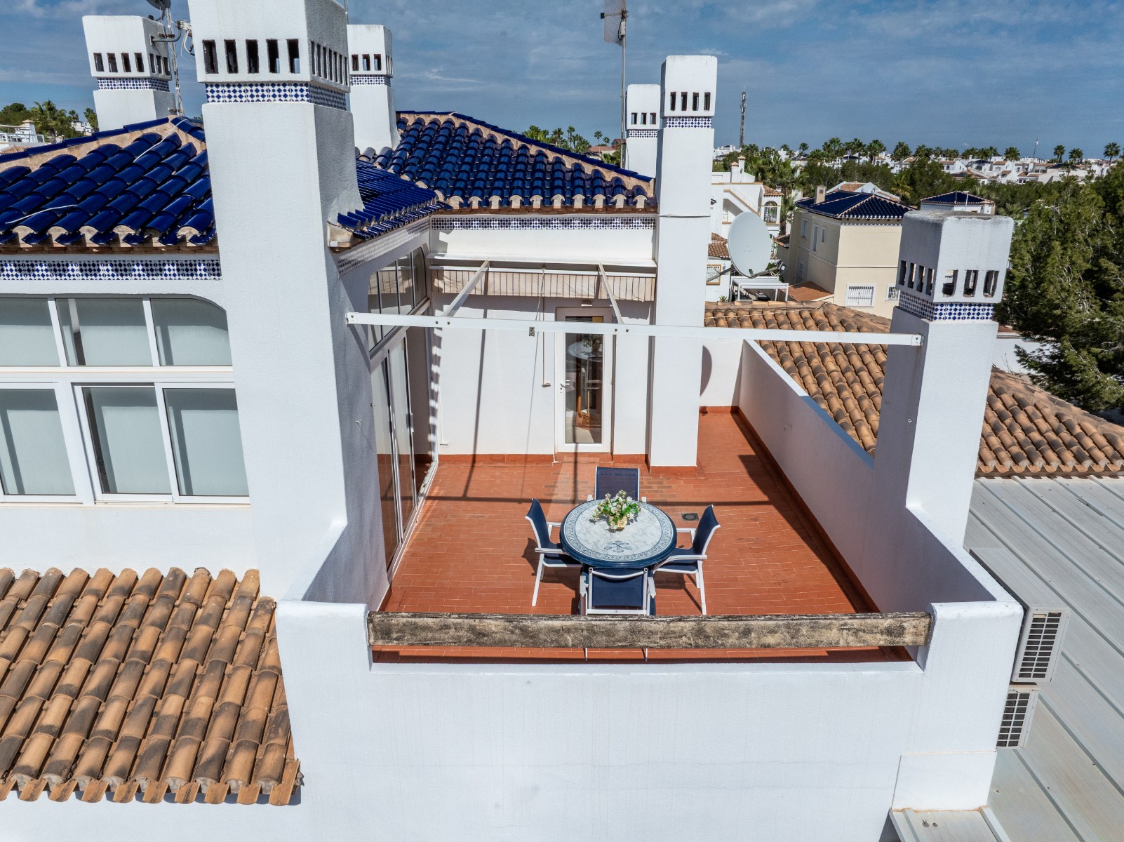 In het geliefde Los Dolses (Orihuela Costa) vindt u dit uitzonderlijke penthouse op het zuiden, met panoramisch zeezicht en een indrukwekkende buitenruimte. Een woning waar comfort, licht en mediterrane levenskwaliteit samenkomen.
