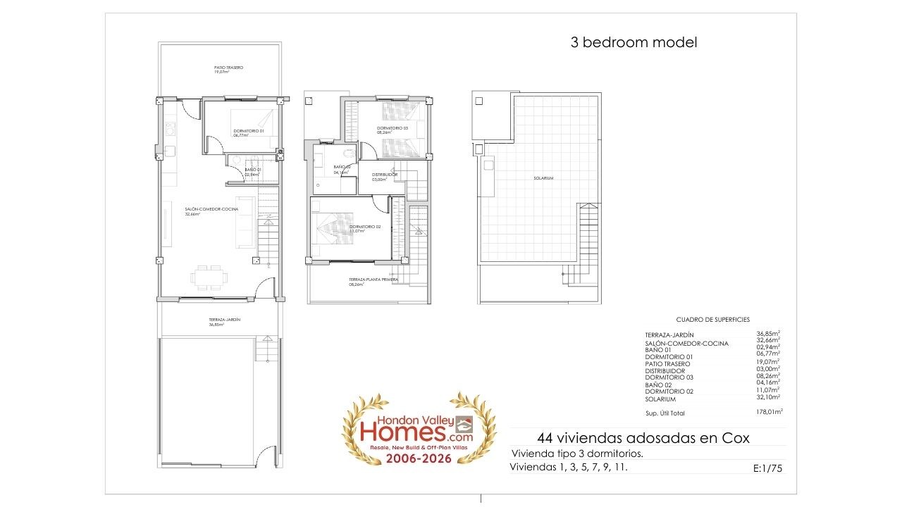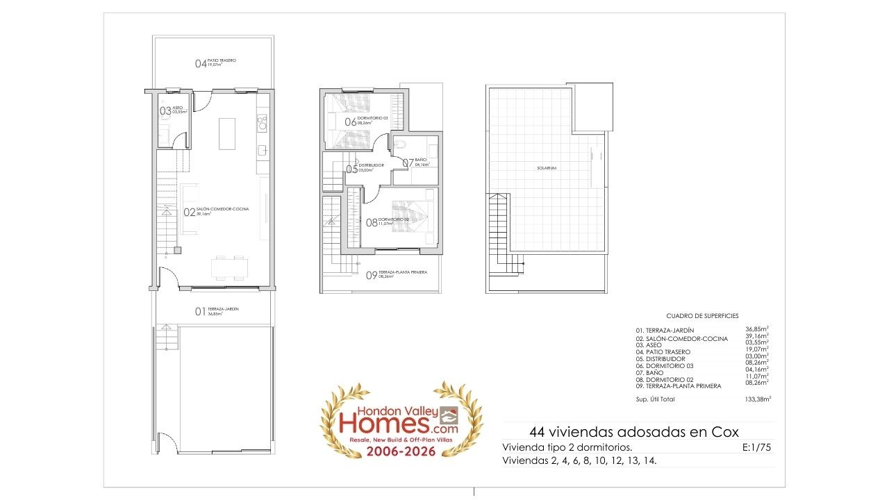 Bent u op zoek naar een moderne nieuwbouwwoning onder de Spaanse zon met uitstekende verbindingen en een sterke prijs-kwaliteitverhouding? VegaSol Homes in Cox kan precies zijn wat u zoekt. Dit project bestaat uit 44 halfvrijstaande villa’s met 2 of 3 slaapkamers, ontworpen voor comfortabel mediterraan wonen. Ideaal als vaste woonplaats, vakantiehuis of investering. Elke woning beschikt over: Privé solariumTerrassen en patioPrivé parkeerplaats op het perceelAangelegde tuin met kunstgrasGemeenschappelijk zwembad Perfect gelegen op slechts 40 km van de luchthaven van Alicante-Elche en dicht bij Orihuela, Elche, Alicante en Murcia. Ook golfbanen zoals La Finca en Vistabella liggen vlakbij. Current Availability (VAT not included) All properties: Plot size: 101.35 m²Built area: 81.73 m²Terrace/Garden: 36.85 m²Rear patio: 19.07 m²Solarium: 32.10 m² 2 Bedroom Villas – From €223,000 Plot 39 – €223,000 – Delivery March 2026Plot 42 – €223,000 – Delivery March 2026Plot 43 – €223,000 – Delivery March 2026Plot 13 – €235,000 – January 2026Plot 16 – €235,000 – May 2026Plot 17 – €235,000 – May 2026Plot 18 – €235,000 – May 2026 3 Bedroom Villas – From €238,000 Plot 41 – €238,000 – March 2026Plot 44 – €243,000 – March 2026Plot 15 – €249,000 – May 2026Plot 19 – €249,000 – May 2026Plot 7 – €252,000 – January 2026