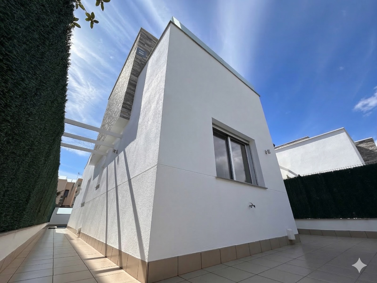 Ontdek deze prachtige villa gelegen in het charmante Lo Pagán, in San Pedro del Pinatar op slechts 500 meter van de zee. Deze verzorgde woning combineert comfort, ruimte en een uitstekende ligging aan de Costa Cálida, ideaal als vakantieverblijf, investering of permanente woonst. De villa, gebouwd in 2015, staat op een perceel van 162 m² en beschikt over een bebouwde oppervlakte van 109 m², verdeeld over twee verdiepingen. Binnen vindt u drie ruime slaapkamers en twee badkamers, waardoor de woning perfect geschikt is voor gezinnen of om gasten te ontvangen. Buitenleven staat hier centraal dankzij de drie terrassen, waarvan twee op de bovenverdieping, ideaal om te genieten van de zon en het mediterrane klimaat. Het zuidgerichte terras is uitgerust met nieuw tuinmeubilair en een nieuw zonnescherm (2025), waardoor u het hele jaar door comfortabel buiten kunt ontspannen. Daarnaast beschikt de woning over een privézwembad, perfect om af te koelen tijdens warme zomerdagen. De volledig uitgeruste keuken beschikt over alle nodige toestellen, waaronder een magnetron, keramische kookplaat met oven, koelkast en vriezer. Verder is er een aparte berging met wasmachine voor extra praktisch comfort. Voor een aangenaam binnenklimaat is de villa uitgerust met nieuw geïnstalleerde warm/koud airconditioning via kanalen (2025) in alle kamers, die bovendien op afstand bediend kan worden via een app. Uiteraard is er ook internetverbinding aanwezig. Met zijn uitstekende ligging dicht bij zee, moderne voorzieningen en aangename buitenruimtes is deze villa een ideale plek om te genieten van het mediterrane leven. Energielabel: DInteresse in deze mooie villa aan zee? Neem vandaag nog contact met ons op voor meer informatie of plan een bezichtiging. Wij helpen u graag om deze woning zelf te komen ontdekken!